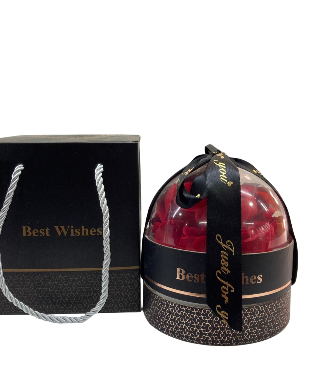 Özel Sunum Kutusu: Şık siyah ve gold detaylarla süslenmiş, üzerinde "Best Wishes" (En İyi Dileklerimle) yazılı yüksek kaliteli muhafaza kutusu.