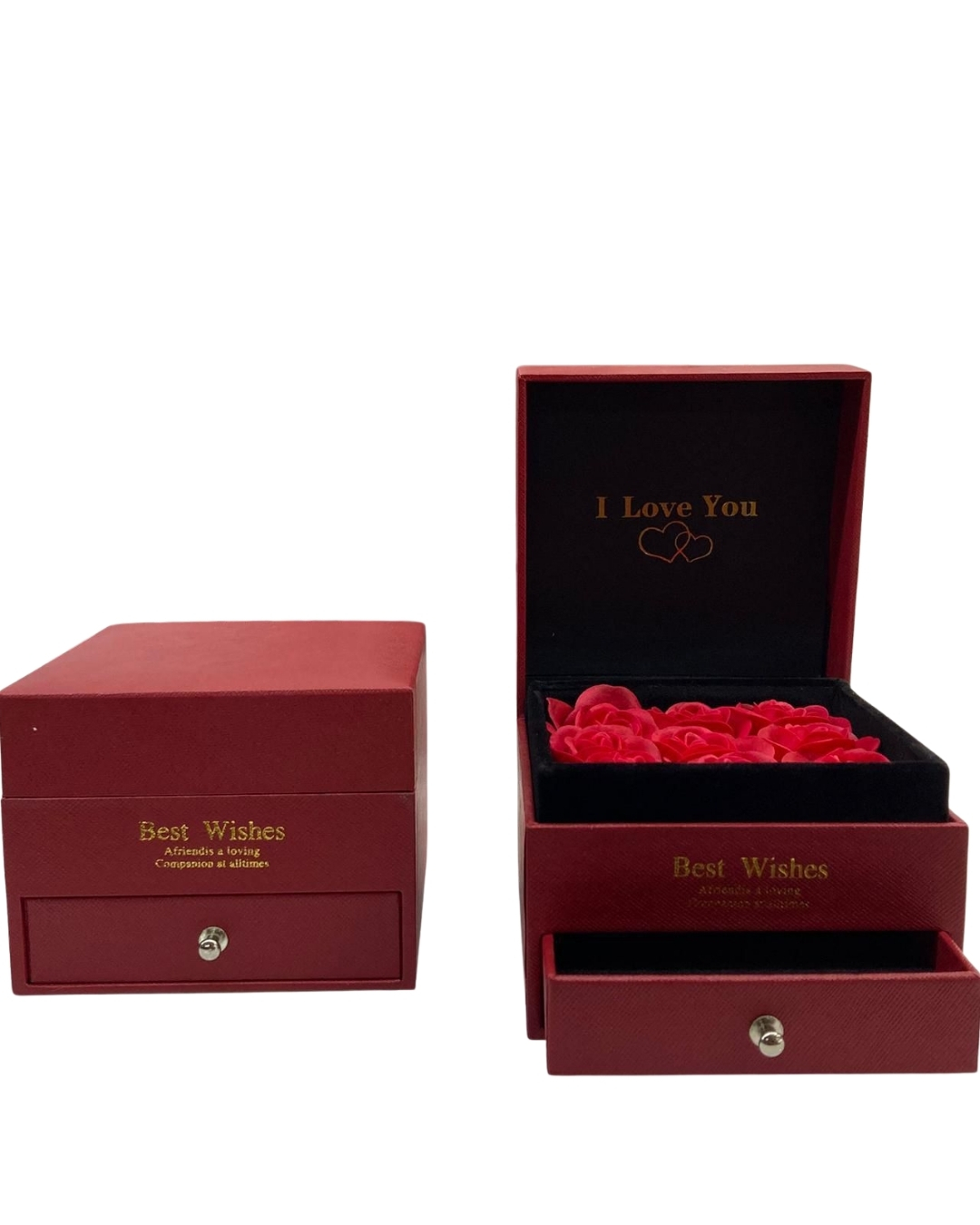 Altın Yaldızlı Sunum: Kutunun iç kapağında yer alan "I Love You" ve dışındaki "Best Wishes" altın yaldız baskıları, hediyenize premium bir hava katar.
