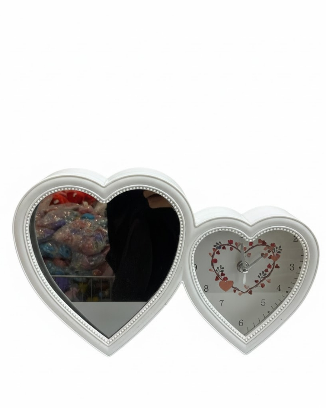 Zarafet ve Fonksiyonellik Bir Arada: Kalp Tasarımlı Masaüstü Ayna ve Saat Seti