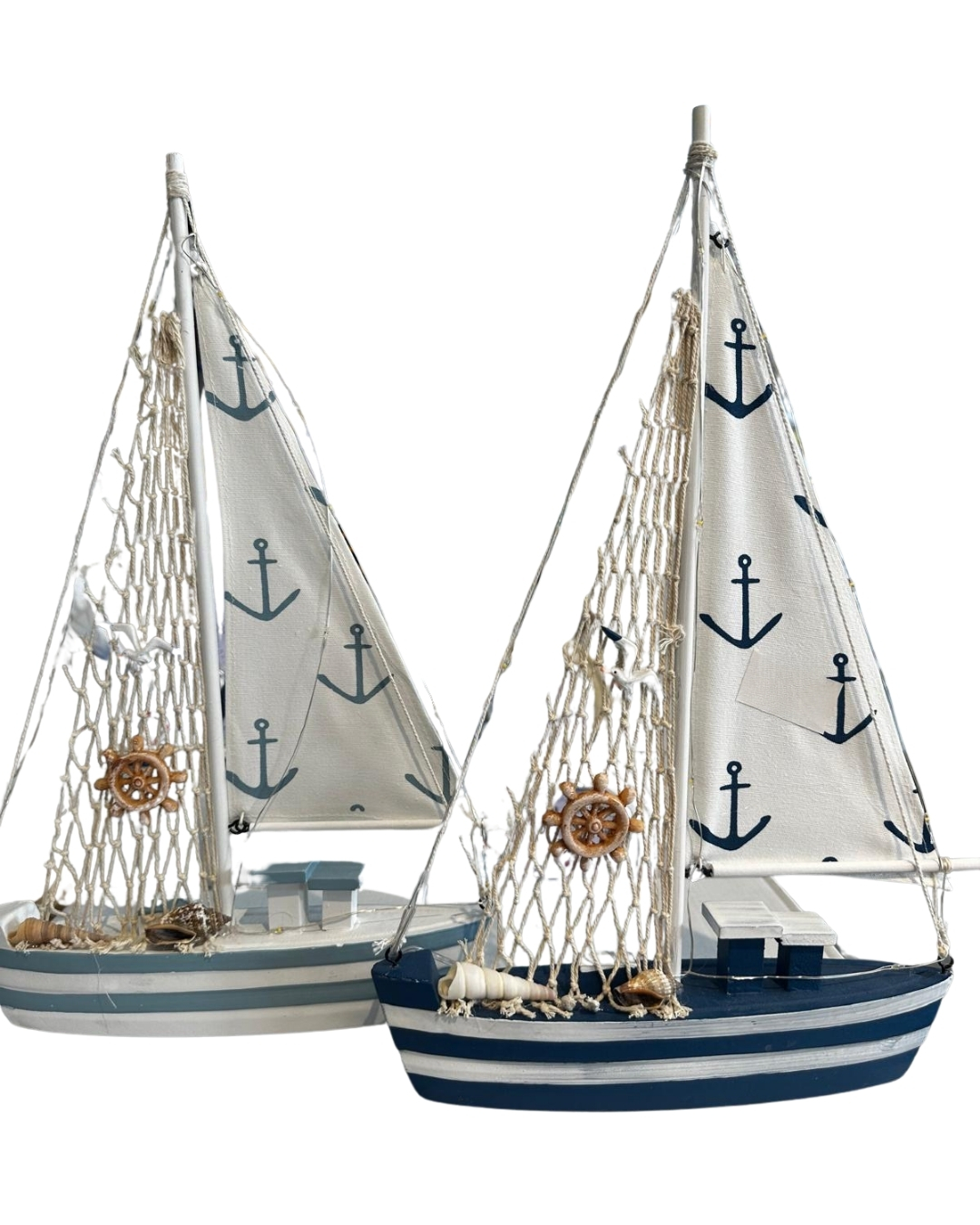 Detaylar: El yapımı ağ süslemeleri, mini deniz kabukları ve dekoratif dümen objesiyle zenginleştirilmiştir.